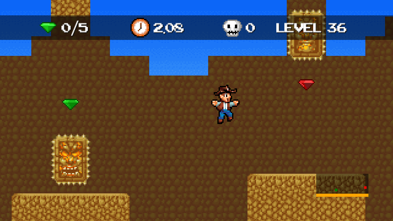 Kris Steele: I’ve wanted to do a platforming game for a while, as those are the types of games that really got me into gaming, but I wanted to do something unique too. My previous release Hypership is pretty frantic, fast paced, and has been extremely well received by gamers. I wanted a way to tie that fast paced action into a more traditional platformer and thus the concept of being trapped in a volcano with rising lava was born. The pixel art style really came about because that’s the style of the platforming games I loved the most growing up. The game isn’t complex, you run and you jump and you collect items and avoid enemies… in a way, a more simple, old school art style seemed more fitting to this.