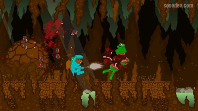 Fluffy is a side-scrolling shooter where you play as a spooky looking squirrel wearing a hazmat suit who is out to wipe out everything in the forest because they’re allegedly infected with some kind of virus. I call bullshit on that one. He looks like he’s just a bit too happy to massacre the cast of Open Season. Maybe he was looking for an excuse, saw a rabbit sneeze or something and said “well fuck it, end of the world plague, let’s get armed.” Either way, the only thing the game does have going for it is the sheer scale of violence on display. When you shoot something, its guts spill out, heads going flying, and blood turns bodies of water red. I’m sure this alone will be enough to lure in those hopeless torture porn losers who get hard whenever anything on-screen winces in pain.