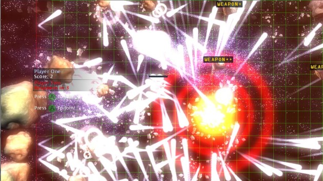 If you can actually get used to the physics, you’ll still have to deal with the screen being spammed with various bullets and space anomalies. You can add or subtract gravity wells and asteroids from the play field in the options menu. Trying to play with these effects turns an already difficult-to-follow game into an unmitigated clusterfuck. It’s as if they were trying to take the Michael Bay approach to game design: just throw as much shit out there as possible and hope it comes out coherent. It didn’t.