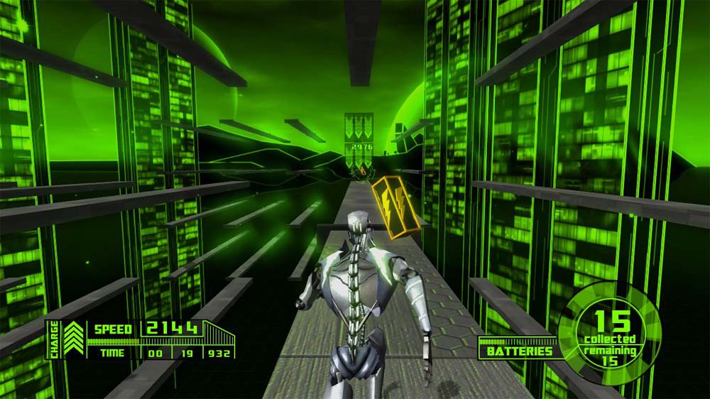 In T.E.C. 3001 you play as a robot that has to run around collecting batteries.  In order to clear each stage, you have to get a minimum number of batteries before reaching the goal.  I’m not sure why they bothered with this aspect.  It wasn’t until very late in the game that I actually missed the target amount, and I only failed at this once.  It seems kind of tacked on and not really necessary.