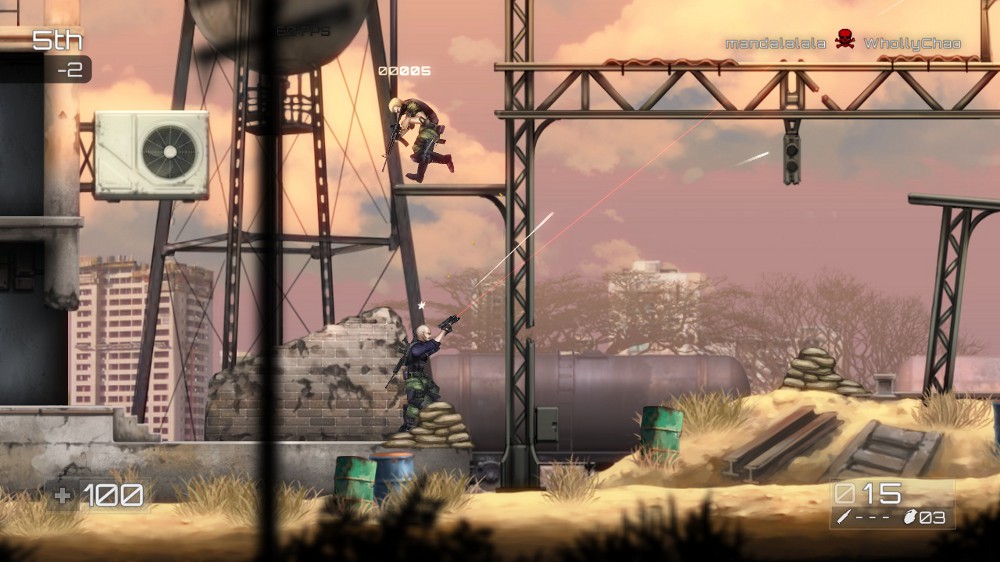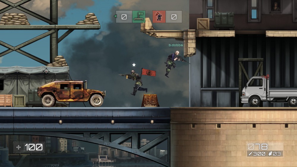 It’s not unusual for me to skip multiplayer when reviewing a game.  In this case, I skipped the single player.  Along with my boyfriend’s roommate Bryce, we played on Xbox Live.  We jumped in and I immediately got a feel for the control scheme.  Well, most of it.  It works pretty much like any third or first person shooter, only from a 2D perspective.  The ability to jump down off of platforms was discovered by Bryce, which was a bit embarrassing for me, but we had a good time learning the ropes.