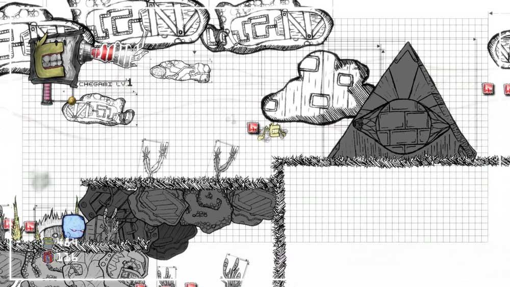 Chester is a 2-D platformer that tries so damn hard to not be generic that you have to tip your hat to it.  This is mostly due to the inspired graphics style.  Or should I say styles.  There’s many different ones, ranging from the default hand-drawn look that makes Chester feel like it’s a Nicktoons game to sketchbooks to Gameboys, etc, etc.  It’s as if the developer couldn’t decide on which specific direction to take the game, so instead of choosing one he just said “fuck it” and included all of them.  Every stage has a default theme, with extra themes being hidden throughout the quest.  At any time you can use the bumpers to switch between themes.  As of this writing, the themes don’t have any direct effect on game play, but future updates will include hidden areas that are exclusive to one particular graphics style.