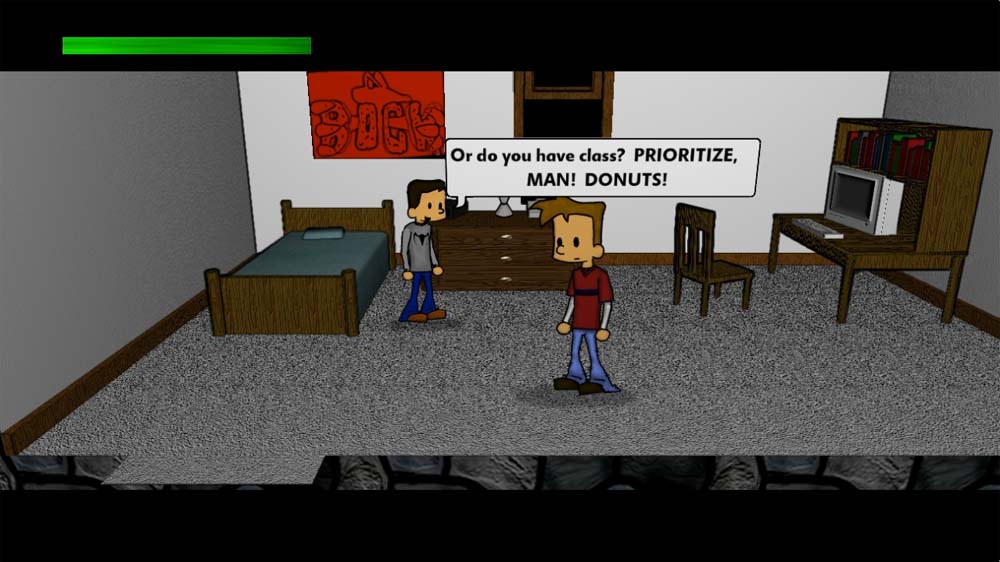 The first of four levels ends with you meeting your BFF, but then he starts to talk to you as if you’re on your death-bed, which for me was the “ohhhhh I get it” moment. So obviously the dude is in bad shape somewhere and we’re guiding him through some type of purgatory. In the second level, you meet your future wife after getting punked out by a bully. In the third level, you attend your best friend’s funeral. In the final stage, you relive your office career.