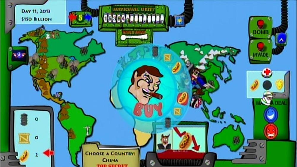You can also try to schmooze or strong-arm countries into giving you better exchange rates from time to time. This is done with a meter that bounces back and forth at a speed that’s determined by how much a different country loves or hates America. It only seemed to give me a marginally better exchange rate, but half the time I would try to do it, I would somehow get booted back onto the world map, even if I stopped the meter in exactly the right spot. There’s a lengthy tutorial but I still had no clue what I was doing half the time. Things just progress too quickly and any moments of clarity that I was able to gleam were thwarted by not possessing the God-like reaction times that are required to pull off certain actions.