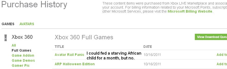 So that’s Avatar Rail Panic and it’s inbred spinoff. I can’t really say either game is a complete waste of time, but without online leaderboards, there’s no reason to keep playing. You can give the demo a try if you wish, and thank your lucky stars that you never told anyone you would never ever play demos, because you’ll likely have as much fun as I did and save two bucks in the process. Avatar Rail Panic is not horrible, but it’s not compelling enough to warrant a purchase. Oh, and why the fuck is it called Avatar Rail Panic? You’re not really running on rails. You’re running on the thing that’s running on the rails. Hey, it’s a big difference. Have you ever tried to actually run on a rail? I did, and as a result, somewhere in Palo Alto there’s a handrail that I technically had intercourse with, and a bloody imprint of my face about four feet below it.