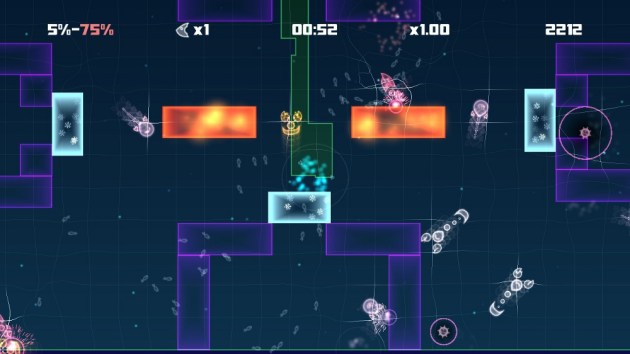 LightFish isn’t nearly as innovative as Cubixx, but it’s good enough to stand on its own. It takes the Qix formula back to 2D basics. Using a little glowy fish thingie, you have to draw a line from one part of a wall to another, closing it off. You need to fill up 75% of a level to clear it. If a baddie touches you or your line before you reach the wall, you die. Most of the enemies are typical staples of the genre, only with an underwater theme to them. There are a few surprises, such as sea thingies that shit bombs out like some bizarre form of aquatic creature dreamed up by Oppenheimer.