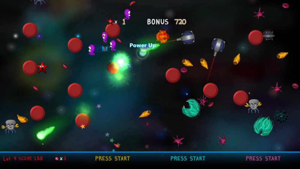 And just to be clear, since this was felt by some to be a glaring omission in my OTO review, no I didn’t play it with four player local-only multiplayer. However, I did manage to briefly play two player. And you might be surprised to hear that it didn’t get any better. I don’t know why people assume everything is better with more people. It might be true of dying aboard the Titanic, but that’s supposed to be horrible experience. With or without more people, Super Kablamo is an incomprehensible clusterfuck and I would sooner recommend shoving a vacuum hose up your ass and giving yourself a Hoover Colonic.
