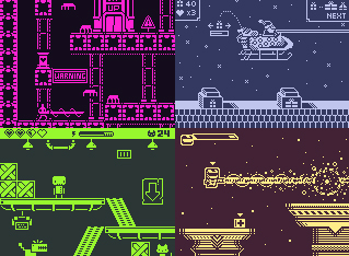 Thinking along the lines of ‘limited palette’, I found a recent shmup in development called “Final Boss” (it’s tough to search on) that looks nice and sticks with green-ish and orange-ish: