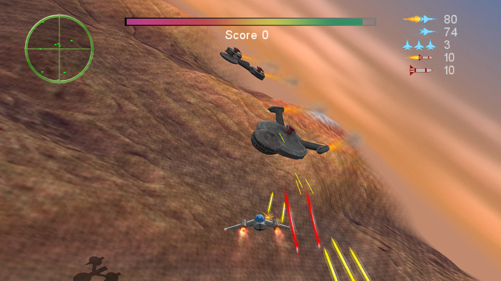 The quite difficult game play and lack of homing missiles is intentional and the hope is that players feel rewarded for mastering the controls. And the tech used is to provide a fun environment for the game play.
