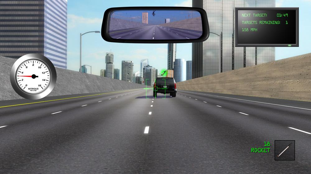 By the end of the third stage, I decided I should either quit the game or kill myself. I chose the former, obviously. There’s just no variety in Unnecessary Violence. Lots of weird stuff that I hated too. Your car is able to set off a nuclear fucking explosion, but you can’t bump other cars off the road. If you’re driving at 140 miles an hour and you bump into the back of a car, it doesn’t even nudge forward, yet it cuts your speed down to a snail’s pace. You do have the ability to give yourself a nitrous boost, but it seems to do little more than give the appearance of moving faster. The rate at which traffic appears while using it doesn’t seem significantly higher than it is when you’re just putting the regular pedal to the non-nitrous metal.