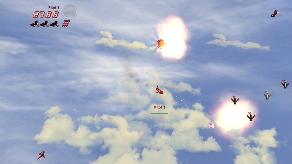 MiG’s graphics are not spectacular or anything, but it does have decent character models and pretty looking clouds. I would probably have liked these things more, but it quickly became obvious that MiG could serve as a poster child for developers allowing ascetics to get in the way of gameplay. MiG suffers from all kinds of visibility issues. You often can’t see your bullets, but more importantly, you often can’t see those of the enemies either. In a game that is all about shooting things and dodging bullets, that is pretty significant problem. The bullets just blend it too much with the background, and sometimes the planes do too, depending on what color the backdrop is. The game constantly switches between day and night, dusk and dawn, meaning that no matter what color ship you choose, keeping an eye on it can be troublesome. I had the best luck with yellow, even if it made me feel like I was flying a giant Twinkie.