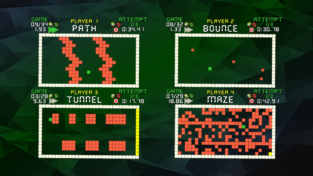 Sadly, it doesn’t. Minigame Marathon’s only option is split-screen local multiplayer, which requires the games to be shrunk to fit each box. On some of the games, that’s fine. But in stuff like Maze or Mine, which involves navigating tight spaces (especially on high difficulties), seeing which way to move is extremely tough. I have a television large enough to double as God’s surfboard and it still wasn’t enough for many of the games, crippling the fun. Considering that the previous game by his developer was Avatar Grand Prix 2, which had a pretty decent and robust online mode to it, this feels even more like lost potential.