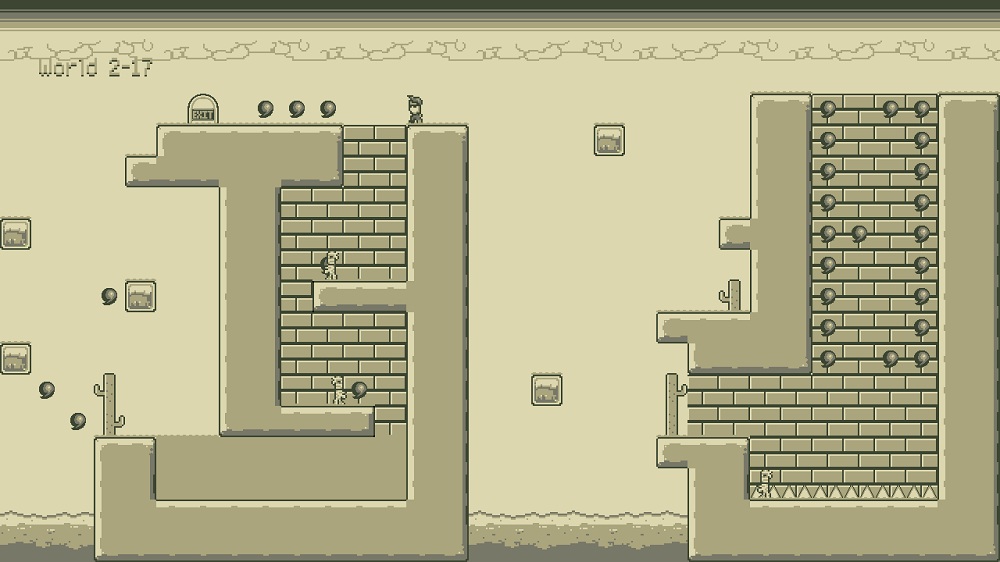 Slick.  So in my original review, I did a step-by-step diagram of why one of the stages didn’t work so well.  The game asked for perfect precision from players, while dealing with shaky controls and insanely unfair collision detection.  The guys behind it have tightened these issues up.  Collision detection more closely resembles the outlines of the enemies, and controls seem to be tightened, but that might be a perception thing.  I still don’t like the level design, or the art style.  Then again, I never owned an original Game Boy, so this does nothing to tickle my nostalgia rib.  I do actively question why anyone would do a Game Boyish game these days.  With the possible exception of Donkey Kong (aka Donkey Kong ’94), most of the games on that platform have aged with the grace and dignity of an unembalmed corpse.