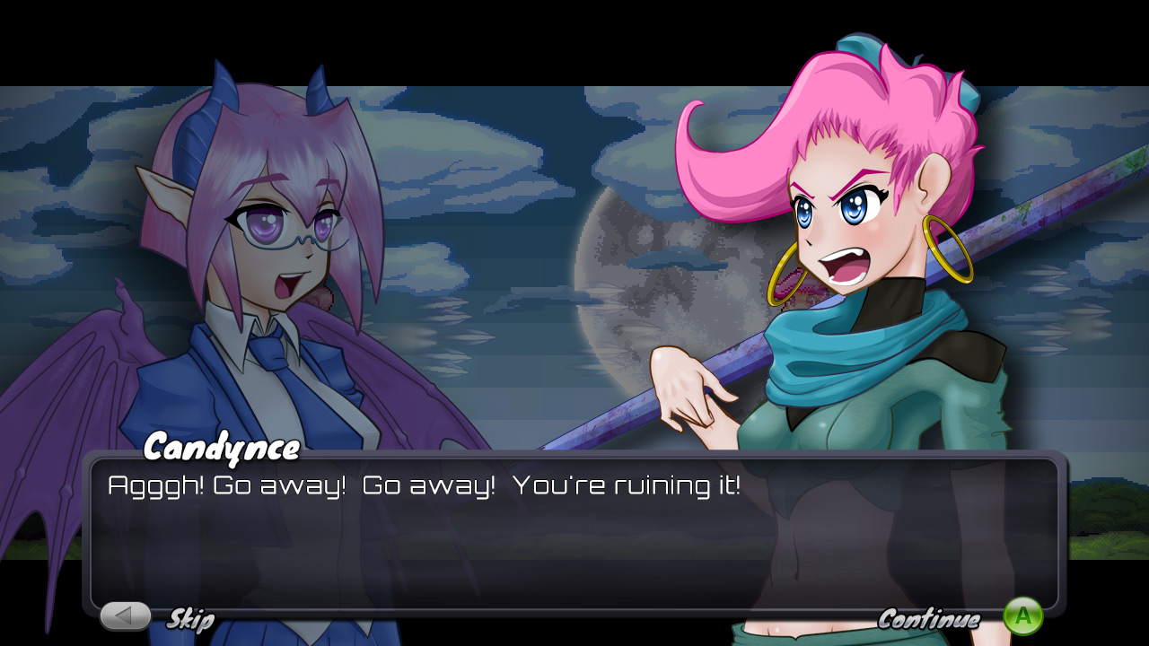 Nate: In all honesty, yes. I spent a lot of time with the dialogue and it sounds goofy and cheesy mostly because that’s exactly what fits the game. There’s actually a lot of thought that went into picking some of the really groan-inducing stuff, and I loved doing it. The story actually picks up a bit more in the latter stages, and there are hints toward the larger universe that Aeternum actually takes place in, but it stays pretty light throughout. Other than some of the things I mentioned already: one of my biggest inspirations was probably Bangai-O.