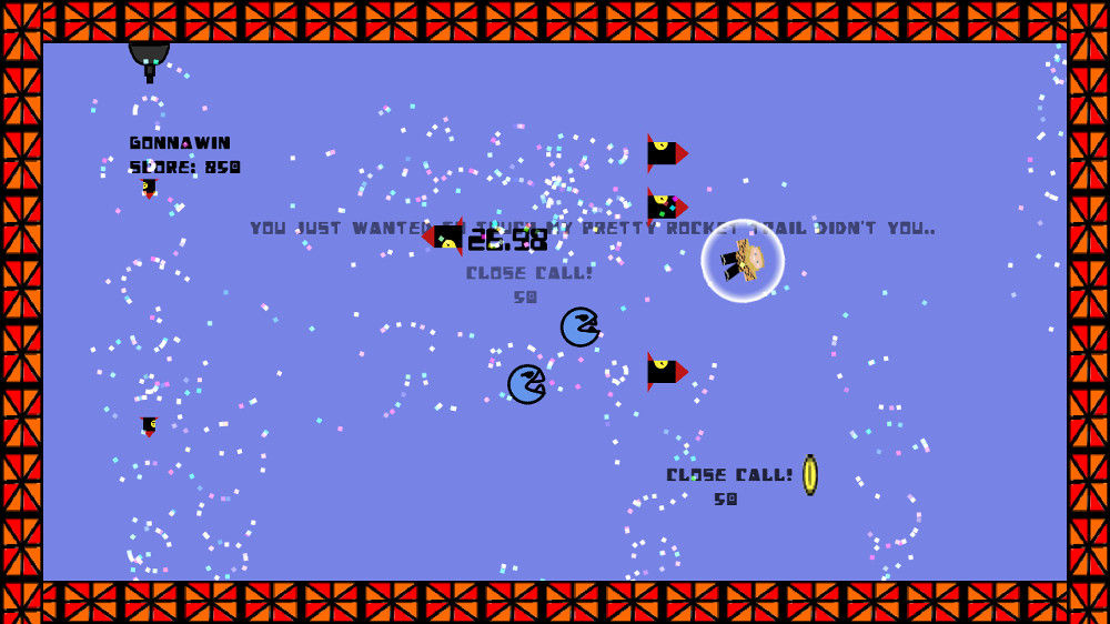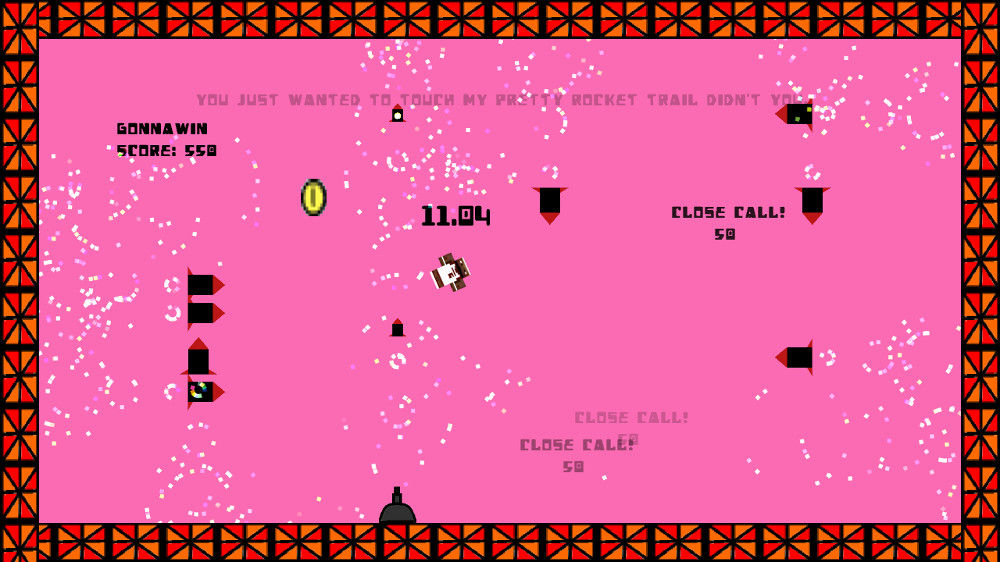 I wasn’t very nice to Hop Til You Drop when I briefly covered it a couple of weeks ago. It’s a twitchy single-screen punisher that involves dodging random hazards the game spits at you. I immediately grasped what the game’s schtick would be and thought “this could be addictive.” But then I died and found out that replaying the game meant going through a seemingly endless series of menus. After just a couple more plays, I decided my time would better be spent brow beating the developer for being such a dummy. My hopes were that he would fix his game. He did. Good thing too, because SWAT was closing in on my house. I admit, taking his family hostage might have been going too far, but at Indie Gamer Chick, we like to take that extra step towards improving the game industry.