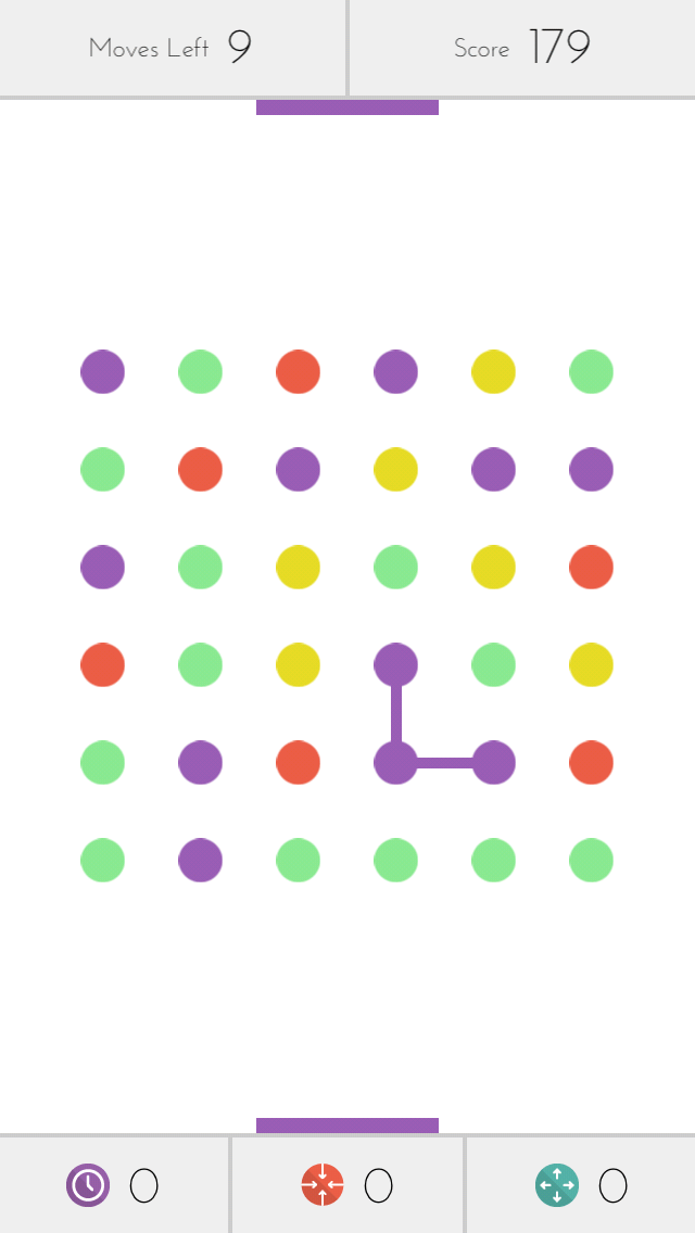 So why have I been hooked on a game that is based almost entirely on luck? I can’t even really explain it. Dots is almost hypnotic in its simplistic pleasure. Part of it is the sound effects. The chimes that grow louder as you string together longer lines, which creates a soothing STOP LAUGHING AT ME! I’m serious! This is like getting a sensual massage in your ears. Plus, I kept playing hoping for that off-off-off chance of me getting onto the global leaderboard. Actually, these guys could really suck people in by making a separate leaderboard for games where no boosters were used. Of course, doing so would probably discourage people from buying the boosters, but still. You can grind up money to spend on the bonuses, two of which can be used once each per game. Add extra time (or five extra moves in 30 move mode) and clear all dots of a color are pretty effective, but the clear-all color booster is very spendy. There’s also a booster that allows you to remove a single dot from the grid, which might open up a run of square-making. None of them are necessary to enjoy the game. In fact, it was days before I used my first one. But, you probably do need them to have any remote hope in Hell of making the Leaderboards. Again, there should have been more.