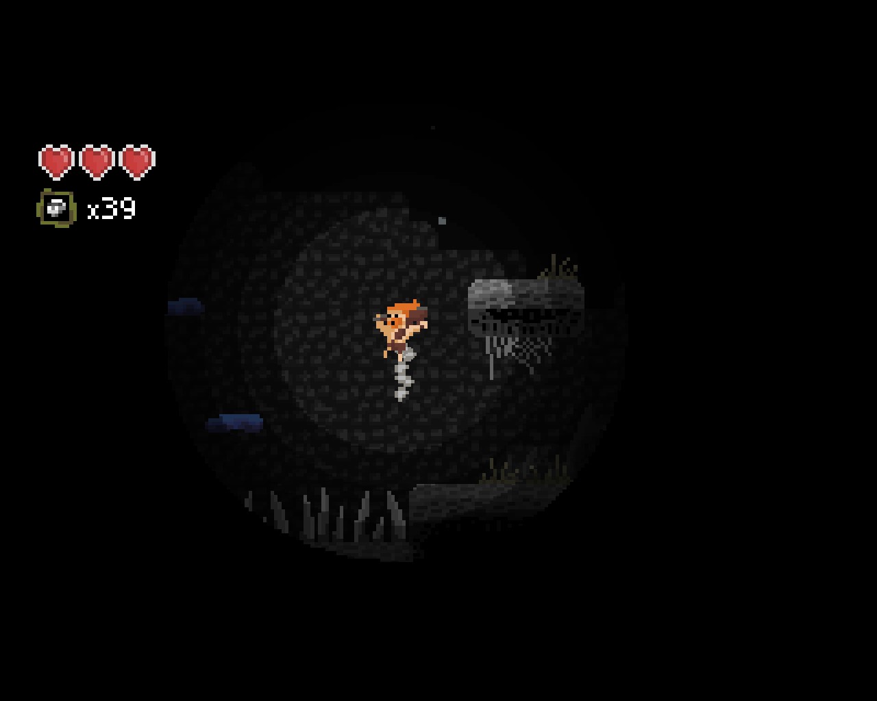 Stages in the dark except one little tiny circle showing you and a little bit of the level around you with an out-of-sight skeleton raining projectiles on you from above that you can’t possibly anticipate or reasonably be expected to dodge on your first attempt next to disappearing/reappearing platforms (the blue things in this pic) straight out of Mega Man with insta-kill spikes beneath them you DICK HEAD! Take a drink. Oh and not pictured: at the end of this section there was an enemy hidden in the grass on a platform you couldn’t see when you began the jump that you would inevitable bounce off of the first time and fall back to the start of this section. Dog food manufacturers who specialize in bully sticks don’t make dick moves this large. Take another drink.