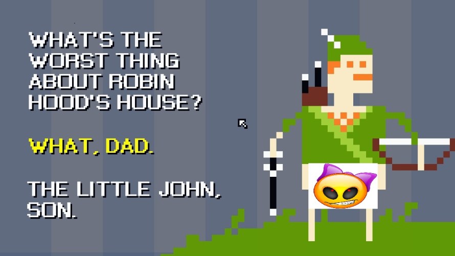 I’m not sure what’s more wince-inducing: the digital penises, the Dad jokes, or the fact that I find the idea of a half-naked, digital Robin Hood to be kinda hot.