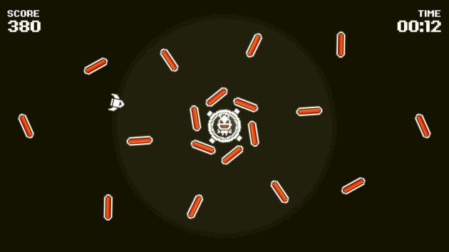 And that’s pretty much my only complaint. In summary: Gyro Boss DX is a perfectly acceptable indie time waster that I recommend. It might even be a good party game too. I really don’t know because my family is fucking useless at bullet dodging games. Up to four-players can be placed around the cylinder, and in multiplayer, the rules might randomly change on you. You could get a round where you can’t stop moving your ship. You might have to collect coins. You might even get to attack other players by firing missiles at them. It looked like it would be fun, but sadly the longest round my family and I played lasted approximately fifteen seconds. Even the kids that play games couldn’t cut it with Gyro Boss DX, and I ended up yelling at them because they sucked so bad that I couldn’t properly evaluate the mode. I mean, god damn family, there had to have been a baby mix-up at the hospital with me and somewhere out there is a confused family of amazing gamers wondering why their daughter is the drizzling shits at dodging hotdog-shaped bullets. Fifteen fucking seconds at most? Most of our games lasted under eight seconds. EIGHT SECONDS! On the plus side, I learned my entire family would take a bullet for me. Even if they were trying not to.