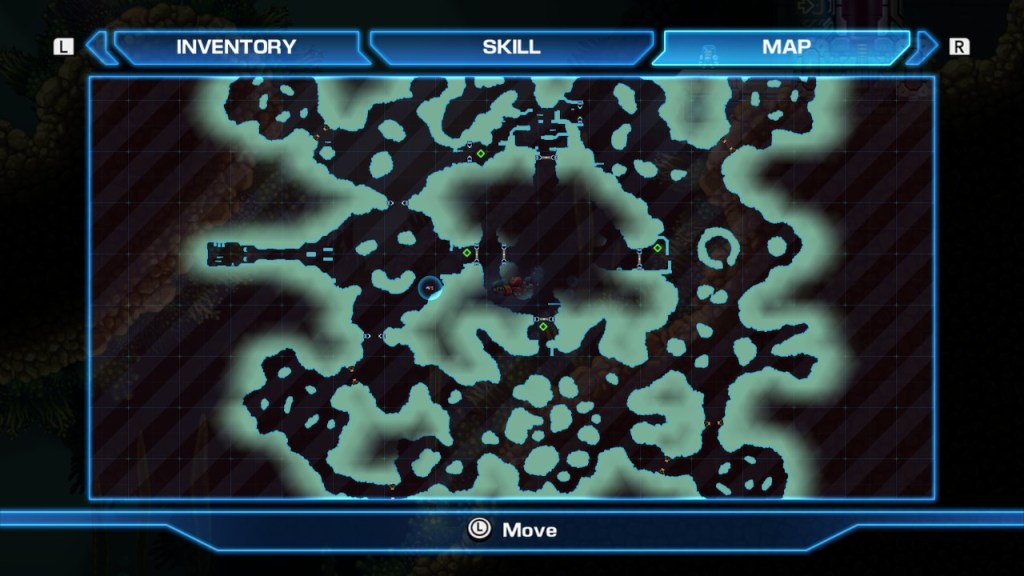 Complaints aside, the XP system keeps the game fresh. That’s a good thing, because the set pieces don’t. The underwater setting makes levels feel kind of samey, at least for the first few hours. It’s not until level four that you FEEL like you’re in a different ocean on a different planet. That’s fine, I guess. You play games like this for the action, not for a tour. The enemies are distinctive enough to be a tick above generic. The bosses, on the other hands, will stick with you. They’re longish, frustrating, but unquestionably exhilarating to do battle with. I had an uncanny knack for having the wrong loadout going into them, but you can swap guns on the fly and experiment, and there’s always a save station right before them in case you die. Plus tons of others spread across the levels that the cowardly among us (ahem) will inevitably dash back and forth to after every teeny tiny bit of progress. Of course, there were also times I went large stretches without remembering to just tap the shoulder button once to save at the station. I don’t know why it didn’t just auto save whenever you opened the stores at the stations, but my own scatterbrainness screwed me over a couple times.