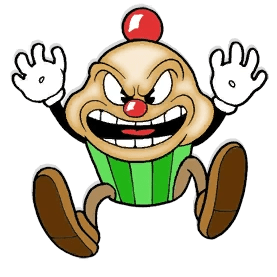 MUFFSKY CHERNIKOV: The only of the five mini-bosses that never appears in simple, and there’s a reason for that. Beating this cupcake is no piece of.. um.. some kind of easily obtainable frosted snack item. In fact, I’d actually make an argument that Muffsky here is the single most difficult phase in all of Cuphead that isn’t a secret phase. Far worse than anything any other boss throws at you, including King Dice or the Devil, with only Djimmi’s optional secret phase being harder. I’ve only successfully defeated it twice, ever. Once was during my fight against it on Xbox One that ended in total victory. This mini-boss leaps around the stage at fast velocities before attempting to butt-stop you. When it lands on the ground, not only is it seemingly invulnerable to your shots, but it creates tidal waves of cream that make the floor deadly. The waves are so low in visibility (in a stage that already has frustratingly small, deadly elements running across the floor) that they’re hard to track and easy to miss. You have to jump to avoid them, which puts you right in the path of the cupcake, who flings himself back up, often right in your direction. I hate this boss. It’s so imbalanced. I don’t know what they were thinking, but the little shockwaves of icing went too far.