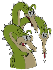 PHASE THREE – HEY, WHERE DID THOSE OTHER HEADS COME FROM?: Grim is now three-headed and constantly spits fireballs at you. The fireballs break into four directions if you accidentally shoot them, which is sort of inevitable. After a while, the middle head will throw on a mask and spit a flame across the middle of the screen, and I’m sure it’s because I suck at video games but I never saw this coming. A big reason for that is this phase takes place in a really dark lightning storm, and since you have to focus completely on making your jumps, you can’t really pay attention. The first few times you fight Grim, it feels like a GOTCHA! but at this point I’ve come to expect that shit from this fight. The third world somehow opens with an even worse battle, which is the only thing that keeps Grim Matchstick from being the bottom of the barrel of Cuphead’s otherwise epic bosses. And again, any of those bullets Grim fired could have easily been a parry chance. Grrrrr. SERIOUSLY HOW DID THEY FUCK THIS UP SO BADLY?