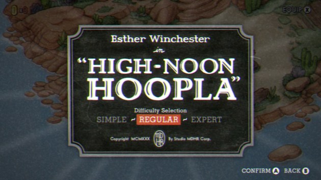 PHASE TWO – HEY NOW, THAT’S NOT THE CODE OF THE WEST: In a sort of opposite of one of Djimmi’s attacks, Esther pulls out a vacuum and beings sucking loot up, and you along with it. After dodging all the debris, she’ll then bend over and launch safes onto the playfield. When the safes hit the ground, they explode into the loot she previously collected, some of which can now be parried. It’s a basic dodging type of stage that goes quickly, and once you defeat it, this wholesome boss suddenly takes a turn at the corner of Dark and Macabre.