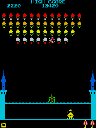 Atari owned the rights to King & Balloon through the same deal that scored them Pac-Man for pennies on the dollar, but they did nothing with it. Not even a prototype or anything. And don’t tell me it was the Zilog Z80 processor, because Atari took a crack at adapting-for-home many games based around that. Pac-Man and Galaxian used it, and they’re on the Atari 2600. This genre was smoking hot during this time frame and I think King & Balloon would have found an audience in 1981 or 1982 on the 2600. So, what gives? After pondering this for a while, the only theory I could come up with that made any sense is that they didn’t want to cannibalize Space Invader’s earnings potential. Either that or Taito had a deal that prevented Atari from porting King & Balloon because it was too close to Space Invaders. Or, if not Space Invaders they wanted to shore-up, perhaps it was Galaxian, which Atari did port in 1983. What a shame that is, because Galaxian was fated to be swallowed up by the test of time. King & Balloon meanwhile is one of two arcade gallery shooters from 1981 or earlier to successfully pass that test. At least from what I’ve played. It’s a very good game in 2023 all on its own, without a single “for its time” asterisk. And nobody cares, because it’s been completely shut-out historically.