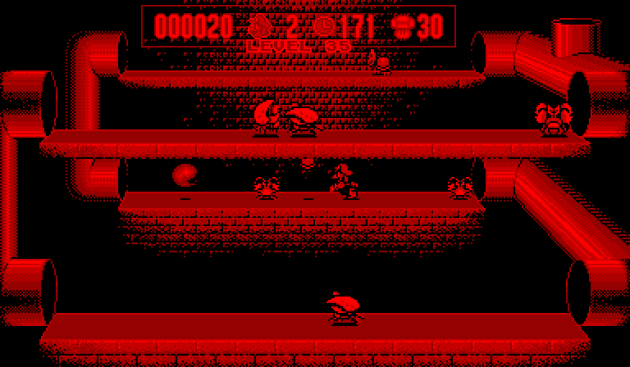 Mario Clash is such a weird name to begin with for what is basically a direct sequel to Mario Bros. As in the 1983 Nintendo coin-op that occasionally shows up as a mini-game in other Mario releases. All indications are that’s what this was originally going to be too. When Virtual Boy was shown off in playable form to the public for the first time in 1995 at the Consumer Electronics Show, one of the launch games announced was called VB Mario Land. Apparently, even though what screenshots are out there look nothing like Virtual Boy Wario Land (including a shot that looks like a Zelda-like dungeon), that single-level demo was retooled into Wario Land VB, while the mini-game for it was expanded into the very game I’m reviewing. Essentially an extended tech demo/proof of concept for the Virtual Boy’s stereoscopic 3D, Mario Clash’s combat is basically Mario Bros. with an extra plane of existence. I’ve never liked Mario Bros. I think it controls crappy and is a repetitive, sloggy grind. Mario Clash CAN be repetitive, and the level design can lead to a frustratingly slow pace, yet the combat is so cathartic that it never truly becomes boring. It just, you know, tries boring on to see if it fits.