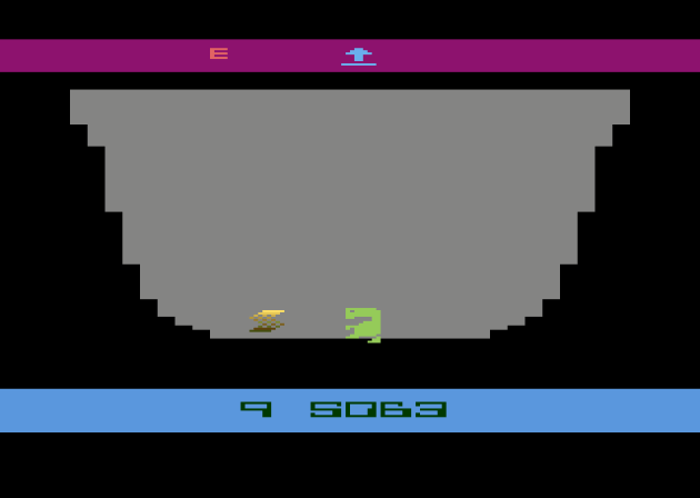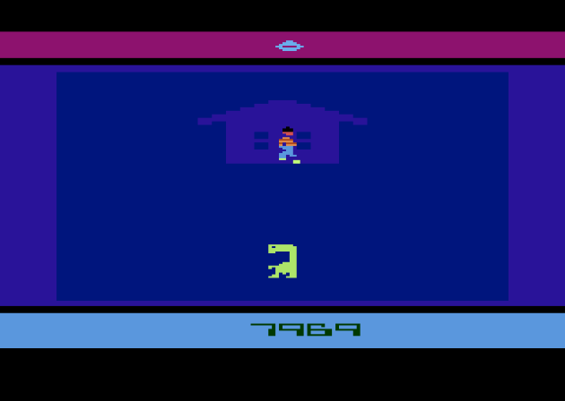 I ended up playing this FOR HOURS. I wanted to finish it multiple times, with and without cheating, so that I could speak on this with some level of authority. In my non-cheating sessions, I honestly worried I wouldn’t finish it. I even game overed a few times because I couldn’t find the spot to phone home. I ended up walking back and forth and back and forth and back and forth, falling into pits, then falling back into pits I just f’n climbed out of, sometimes three or four times, or getting touched by the FBI guys and having to find my phone again. It turned ET into a game that was something like mowing a lawn. Just walking straight lines across the screen, watching for the icon, and hoping against hope I’d see the little Space Invader icon that lets you phone home. It makes me wonder if it’s possible for it to randomly generate in an unreachable area of the screen, like the middle of a pit or something? I even played the children’s mode (mode 3) that’s missing the FBI/Scientist guy, and couldn’t find the phone home icon. I consulted the instruction book, wondering “is there a step I’m missing that I accidentally did without realizing it when I cheated?” There wasn’t. And I never did end up finding it that round. When I finally DID win a round without cheating, it felt like it happened because the gaming Gods took pity on me and I found the icon just as soon as I stepped off the starting screen.