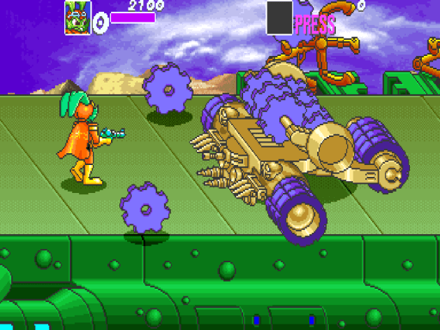 Bucky O’Hare: the NES game is a poor man’s Mega Man and very overrated itself. Bucky O’Hare the coin-op keeps the pew-pewing, but instead, it’s structured like a brawler (and probably used the same engine as Simpsons or Turtles in Time) except fisticuffs are replaced by shooting. It’s a run and gun game, but not like popular run & gunners such as Contra. No, the levels and pacing are still engineered exactly like TMNT or even Capcom’s brawlers. Waves of cannon-fodder enemies walk in and, instead of drilling them with your fists, you shoot them with your laser guns. And it’s boring. So incredibly mind-numbingly boring that I ain’t surprised they didn’t bother bringing this home.