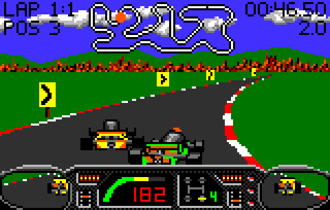 I fully admit I’m not the biggest Pole Position fan. I’ll always cherish those early memories of Dad operating the pedals for me at the pizzeria while I recklessly steered us into billboards while cackling like a maniac (“it was a bad omen of things to come” says my father) but it just doesn’t translate without a steering wheel, gear shift, and pedals. Checkered Flag is Pole Position in all but name, only with a lot more options than pretty much any Atari port I’ve previously played. It’s also one of the most critically acclaimed Atari Lynx games ever. Of course, these are the same critics that couldn’t work up the courage to say that Bubble Trouble sucked, so I took that with a grain of salt.