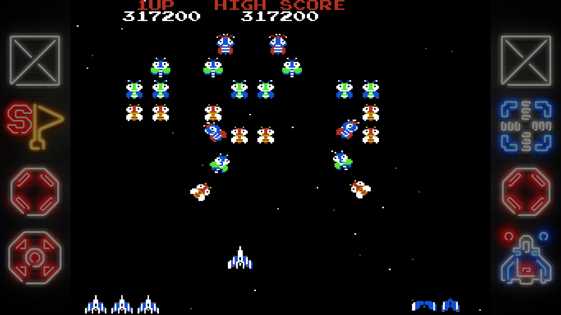 Missing from Galaga is the shot-accuracy calculator when you eventually game over. I enjoyed that, so that sucks. This one does ask for your age and blood type when you input your high score. Weird.