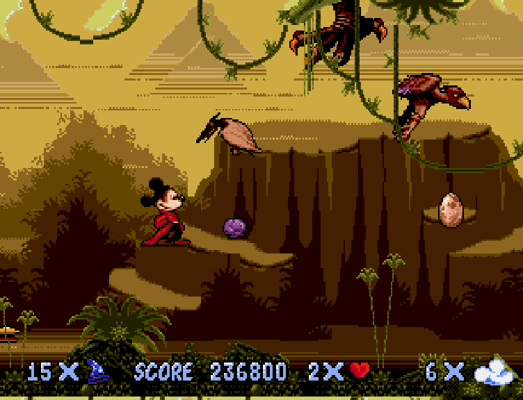 I really don’t get the whole “at least it looks good” bit. Castle of Illusion? Now THAT looks good and there’s no visibility issues. Here, I often couldn’t tell what was a platform and what wasn’t.