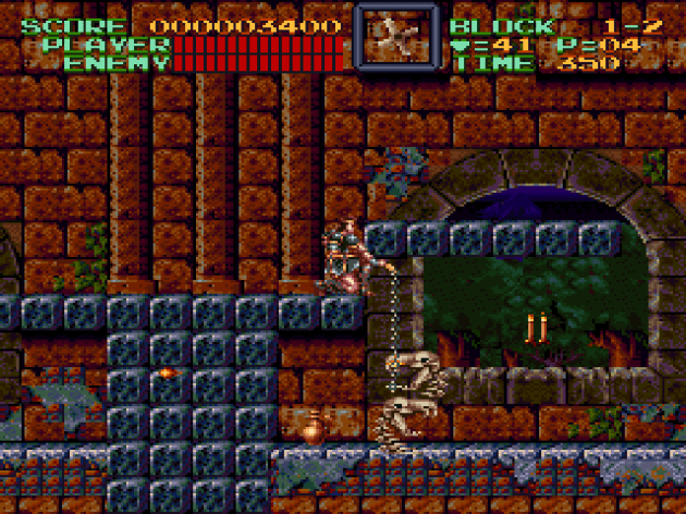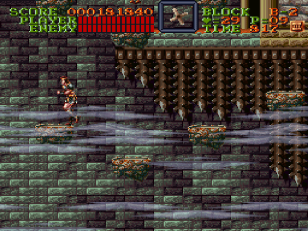 Well, then you, the game designer, have to do other things with the enemies to make them a threat now and not later. Give them projectiles, or some kind of shield. SOMETHING! Otherwise, you’ve basically given the player a free pass. Castlevania IV is missing that extra step. Too many enemies are reduced to being nothing more than cannon fodder. While you can defeat out-of-reach enemies with the right weapon in other Castlevania games, it costs you something. There’s limitations to it. There’s essentially no limitations to your whip in Castlevania IV. You are at an incredible advantage over the baddies. Frankly, it’s only by virtue of the established Castlevania weapon, the whip, being so damn satisfying to use that Castlevania IV doesn’t become dull. That, and the set pieces are (mostly) good enough to carry the load.