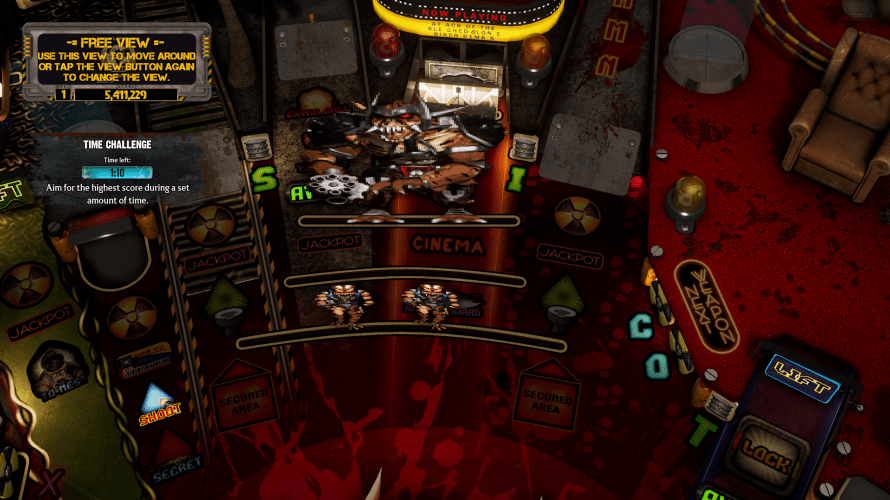 After completing each mode, you have to charge up the left spinner and then shoot the toilet scoop to activate “boss fights” which feature cardboard targets. ONE TIME I saw the second boss. Once in hundreds of games.