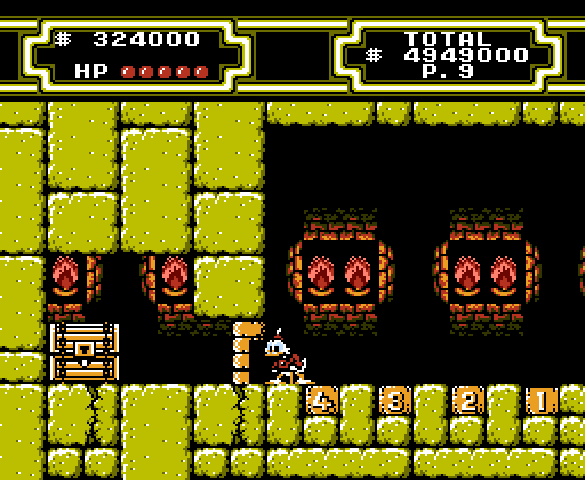 However, props to Capcom for going all-in on level exploration and hidden rooms. Remember the two “hidden treasures” in the first game, and how it was weird to only have two hidden treasures in a game with five levels? Well, there’s only two high-valued hidden treasures in the sequel too. HOWEVER, each level also has a hidden map piece somewhere in it. You start the game with one piece, and there’s a piece that must be purchased from the store. The other five are hidden in the levels. Upon grabbing the seventh and final piece, you are immediately teleported from whatever level you’re in to the hidden area under the castle. This is a sixth stage that has a repeat of the boss from the Scotland level, but the level getting there is an entirely new one. No having to go back and forth to Transylvania, like in the first game. Well actually, you do briefly return to the pirate ship for the final battle. Again, they could have done a Dr. Wily-like final trial, but no, just a return to the pirate ship and a relatively straight walk to the final boss. DuckTales 2 rights a lot of wrongs, but it still feels like Capcom left a LOT on the table with the franchise.