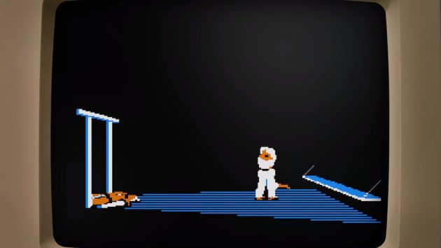The behind-the-scenes stuff is some of the most educational gaming features I’ve seen. The three main subjects of the clips are creator Jordan Mechner, his father Francis (who did the music), and Veda Cook, who led the first two ports (Commodore 64 and Atari 8-Bit computers) after the original Apple II build. All three of them are so dang charming that you can’t help but like them. For me at least, it totally made me scream fewer cuss words at some of the more infuriating design choices of Karateka. I especially liked Francis, who is one of those renaissance man types where you hear his story and all the things he’s done with his life, that it makes you reevaluate your own life. He was a concert pianist, research psychologist, a  famous creator of game soundtracks, invented the question mark, and convinced Wendy’s to use square-shaped patties. I made up those last two but you could believe otherwise with this guy. But what makes it really special is Jordan is next to him, and he has the eyes of a man who is so proud of his father. I found myself wiping away tears just seeing that look. You can tell that having him there to talk about what they achieved together meant the world to him. I loved these interviews. And I loved the information in them, too. Cook gets one of the longer videos to talk about the challenges in the ports. There’s a clip devoted entirely to rotoscoping. There’s some interviews explaining things from Brøderbund’s side of the project. They covered more bases than I expected.