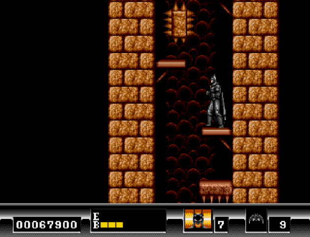 Batman does the old “invisible gap” trick that was all the rage in the 8-bit platformers. But, actually this does it better than most. The areas where the invisible gaps are have incredibly subtle tells, and once you figure it out, it feels like an earned challenge element and not a gotcha. Surprising and kind of wonderful. Hey Simon’s Quest: you were just bitch-slapped by puny Batman.