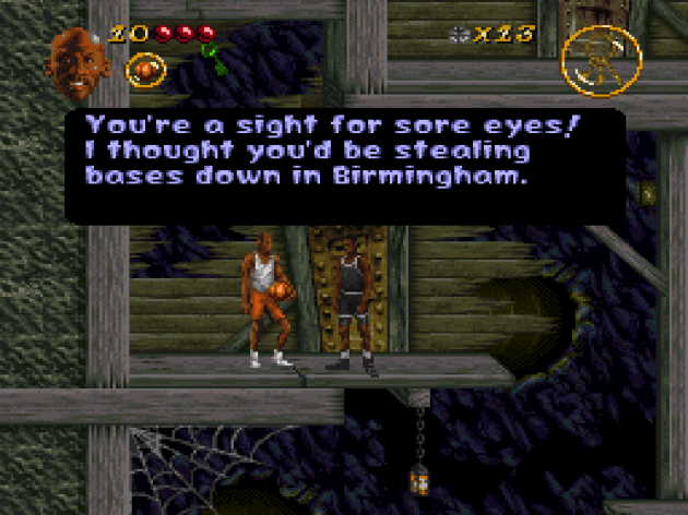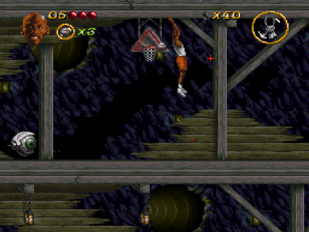 Chaos in the Windy City is a completely ludicrous concept. But, the most insane thing about it is, holy crap, this is a pretty dang good game. Oddly enough, the franchise it shares the most DNA with is Ghouls ‘n Ghosts. Really! There’s some creepy-ass visuals in this one that really offset the silliness of this whole thing. Basketball monsters and.. uh, well, more basketball monsters, but seriously creepy ones. Fake basketball-themed items that turn into basketball monsters that then drop basketball-themed items when you kill them. Giants mutant basketball players. I’m frankly shocked the bats aren’t basketballs with wings. But, all the enemies are fun to do battle with. You have an unlimited supply of basketballs to throw at them, but there’s a huge variety of specialized balls that freeze enemies, set fire to the ground underneath them, ricochet off surfaces and multiply, and even ones that heat-seek. Ammo is rarely a problem, as there’s refills for all varieties scattered all over the sprawling levels. My one knock with the combat is you can’t really aim. It’s a basketball being thrown by Michael Jordan for god’s sake! You know how if someone is the best at something they say “they’re the Michael Jordan” of that sport? Well, Michael Jordan is the Michael Jordan of basketball BECAUSE HE IS MICHAEL JORDAN! I would think he’d be able to throw a basketball at something below his waist.