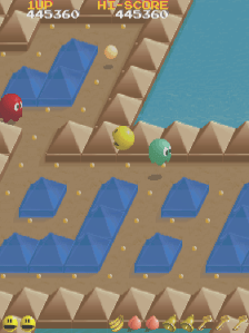 Using impressive (for the era, at least) 3D graphics and an isometric view, you have to navigate four massive mazes that can have anywhere from four to NINE ghosts chasing you. The biggest change isn’t the 3D graphics or larger-than-the-screen mazes. In Pac-Mania, you can jump. Not just that, but it’s one of the most acrobatic and intuitive jumps in gaming history. With practice, you can wiggle in mid-air if you need to in order to utilize the jump to avoid an entire train of ghosts. Of course, the ghosts are rarely in a continuous conga line. There’s usually gaps between them, which is why you need to practice-up doing the sky shimmy, since you might need to angle your jump to land in a tiny space. Often, the final dot might end up being one that you have to avoid every ghost in order to get. Since you don’t transition from jump to running seamlessly (there’s a little bounce upon landing), and since the ghosts are faster than you after a certain point, getting good at jumping is the key to everything. It also lends itself PERFECTLY to the near-misses and excitement of the traditional Pac-Man chase. It’s so well done.