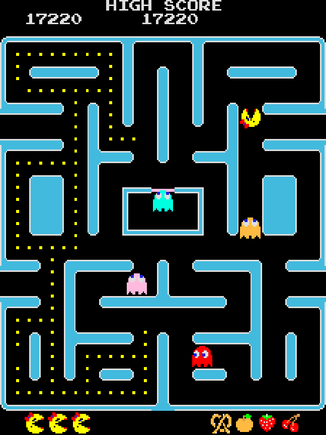 Notice the distance between Blinky (the red one) and me. I didn’t do anything special. He just can’t keep up on this map. There’s too many straightaways.