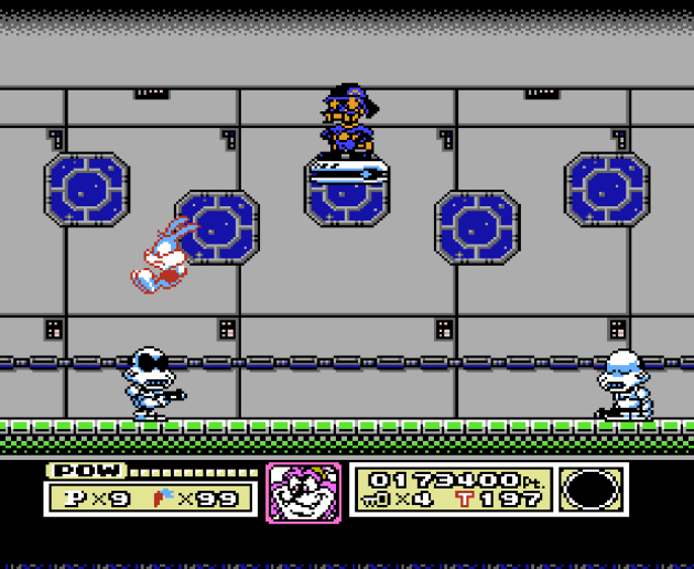 Since today is my 35th birthday, I figured I’d give myself a birthday present by reviewing a game that was sure to appeal to my retro-loving readers. And then I played Tiny Toons, and I stopped getting what all the fuss was about after a while. It’s a pretty bland experience, and one that feels like it gets rushed to the finale during the final stretch of the game. The first handful of worlds have three levels to a stage. But then world fifth and sixth “worlds” are each only single level. The whole structure is off, as at one point, after fighting a boss, you fight another boss, Darth Duck or something, for three extra lives. I don’t know why that happened. I never watched reruns of the show as a kid. It’s a very typical hop ‘n bop platformer where you jump on most baddies to slay them. The biggest twist is you can select an alternative character at the start of each world. Buster has no special ability, but the three helpers can either break blocks, float, or run straight up walls. Okay, that sounds neat.
