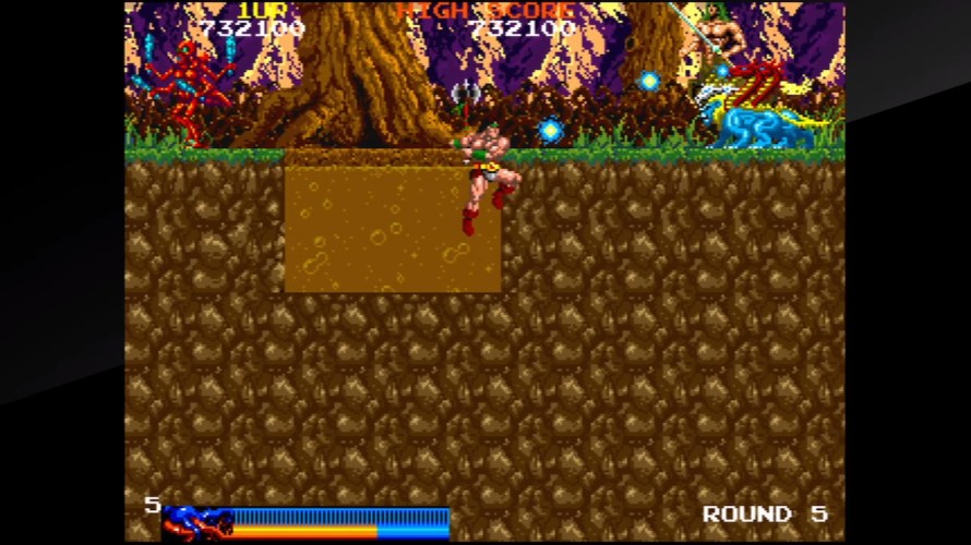 Here’s one quality of life enhancement that Taito Milestones 3 does have. Some of the games have autofire on the controls, while others don’t. Bubble Bobble didn’t, but but Rastan did. At first, I figured “why’d they even bother?” But then I came across this puddle of quicksand. I think this might be the only one in the entire game, too, unless there were others I jumped over. Without autofire, I’d certainly been stuck in here. Even cranking the autofire up to the max, it took me a while to work my way out of it. I think it’s safe to say I would have lost a life without it here, so hey, good inclusion.