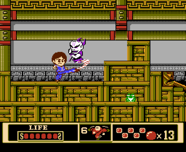 The biggest weakness of the NES version is the lack of enemies. You usually only fight one or two at a time. While the scale is larger than most NES games, the game does have a tiny bit of an empty vibe to it, which prevents the higher stakes of something like, say, a Super Mario game. On the other hand, the combat is varied and satisfying. Smacking a frog causes it to spit-up a seemingly random special attack, usually some form of a spin-kick that does extra damage. You also get a limited supply of fireballs that you get from charging-up the attack button. The variety assures that the combat never gets boring, even if there aren’t quite enough baddies to dial-up the excitement.
