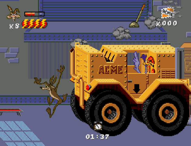 The final boss is the same in both versions. You have to just run back and forth activating levers that drop exploding barrels on this Acme truck that the opposite character is driving. This is an okay ending for the Road Runner’s quest, but the Coyote’s? It’s so lame. Why would the Road Runner need to drive what is, let’s face it, a monster truck? It makes no sense! I’m sure it would have been a massive pain in the ass to come up with two different boss fights, but they really should have.