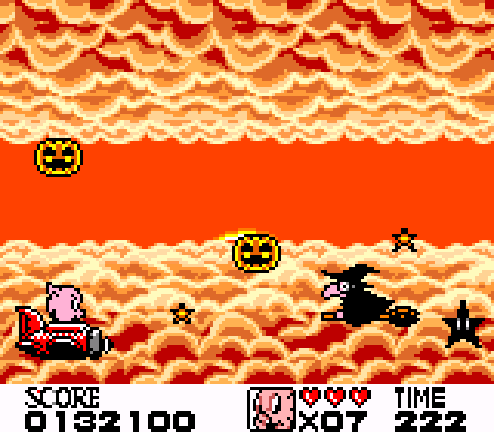 The third stage is the typical and seemingly required-for-certification Game Boy shmup stage, just like Mario Land or the Game Boy Batman. This WOULD have been okay, but the collision is at its worst here. That’s a big problem because the stage’s last boss shoots a heat-seeking fork that’s sometimes seemingly impossible to avoid. It can be shot down, but it takes a lot of shots to do so, and if it’s shot close to the edge of the screen, you just won’t have time. I died twice fighting this boss alone, and all six hit points felt completely unavoidable. I’m not the biggest fan of Mario Land’s shmup stuff, but Looney Tunes made me appreciate what that game accomplished. In the case of this game, I think the sprites are too big for what they wanted to do. Compared to some of the other ideas in Looney Tunes, this wasn’t a disaster, but it certainly wasn’t good.
