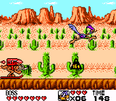 The Road Runner’s level is an auto-scroller where you have to dodge a handful of boulders and then the developers ran out of patience and just sent the coyote in almost immediately. He’s a boss that has to be jumped on, and weirdly, the same collision problems that plagued the shooting section are part of this stage, too. I died here in ways that felt completely unavoidable. The coyote certainly isn’t fun to fight, either. When I realized there was nothing to stop me from just going to the edge of the screen and jumping on him like a fleshy trampoline, the fight ended just seconds later. I get the impression that, at some point, everyone in the development side of things lost their will. Or they ran out of cart space.