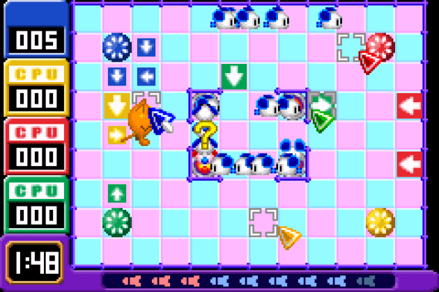 I wasn’t even into puzzle games during this era, but I liked the versus mode of ChuChu Rocket, which was the first console game I ever played with online play. Except it had seriously horrible, ruinous lag. That was fine. On Dreamcast, I played the hell out of this against CPU opponents, which is why I wanted a copy for my new portable game device. Would have been nice if I could have seen the screen. ChuChu Rocket, like Super Mario Advance, is pretty bright, but still not bright enough to overcome the GBA’s horrible original screen.