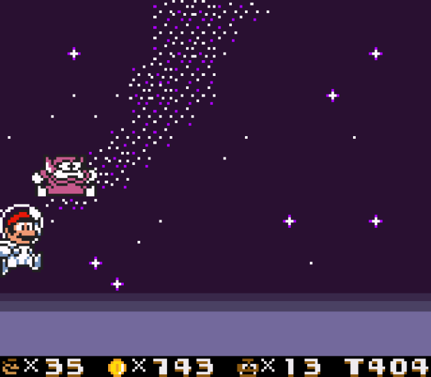 Tatanga, the final boss from Mario Land 1, was the second boss I faced and the first enemy that damaged me at all. About three seconds after he got me with one of his projectiles, I nailed all three hits against him in a row because they didn’t give him hardly any invincibility frames. He basically reverse-stomped himself into my feet.